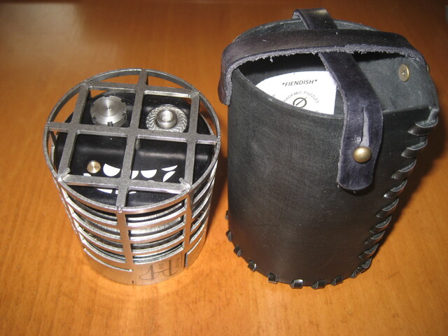 - Demonticon puzzle series, comes in a leather container with two stands, and the demonticon is encaged in a prison cage, both puzzles to be solved for the goal
