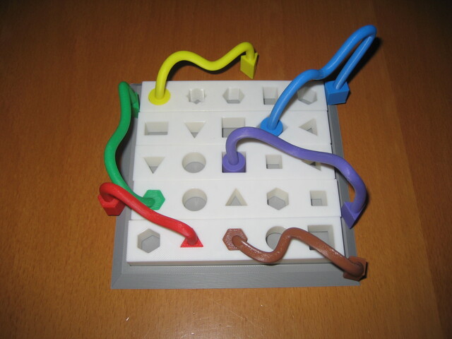 GCD 2026 Giveaway, goal: set up an arrangement of the six white boards and plug the connectors in so they don't interfere and are not under tension.